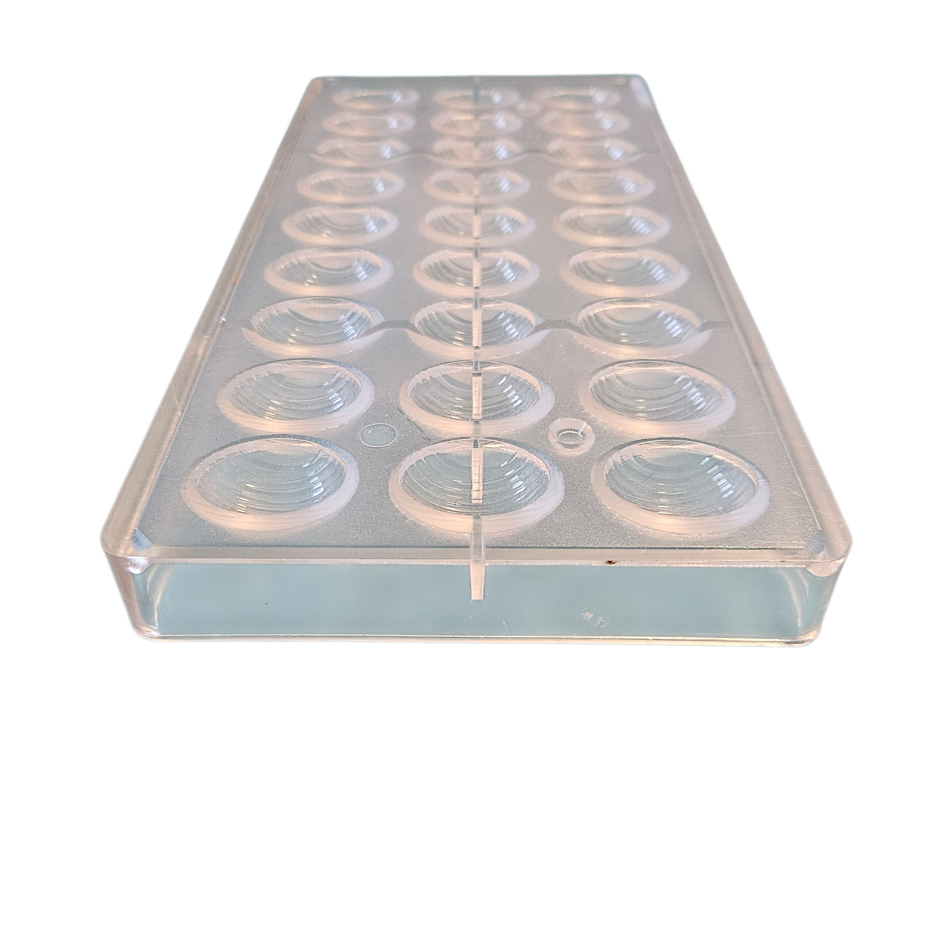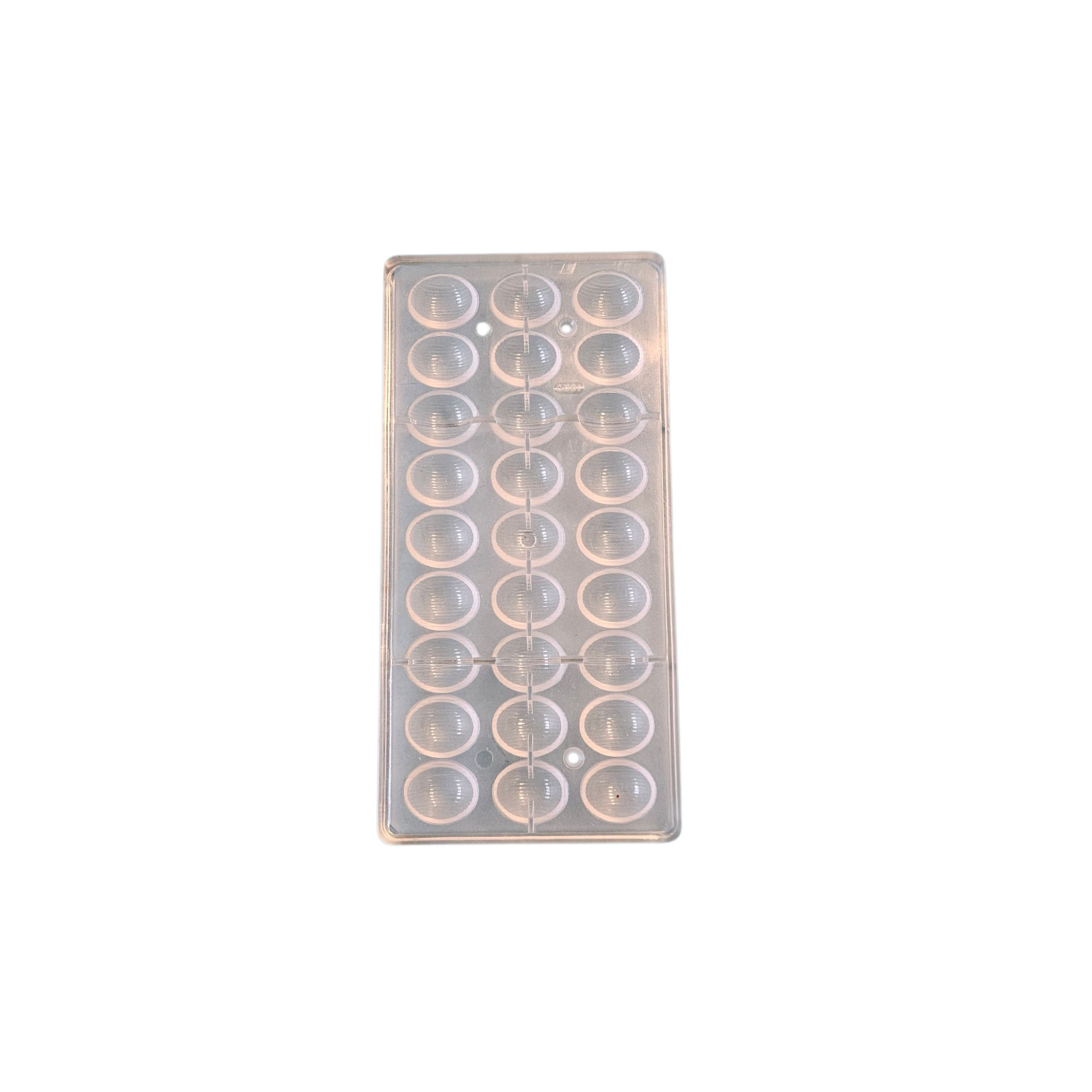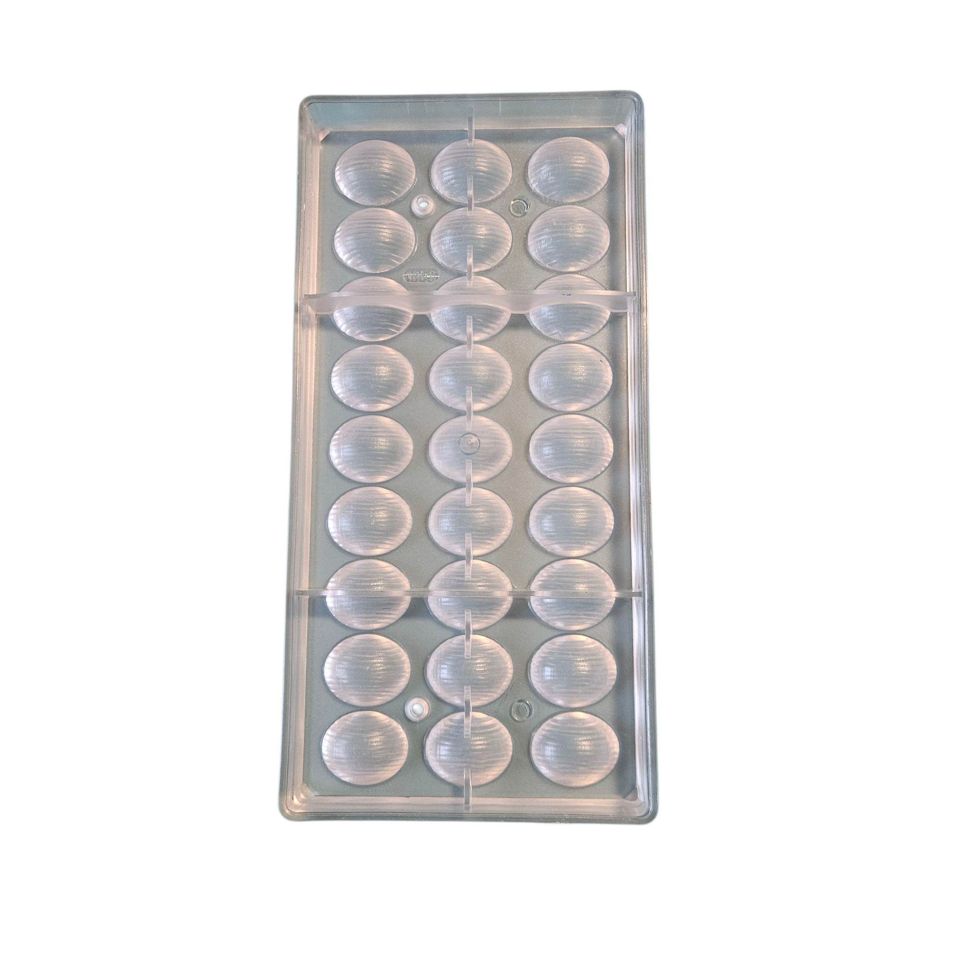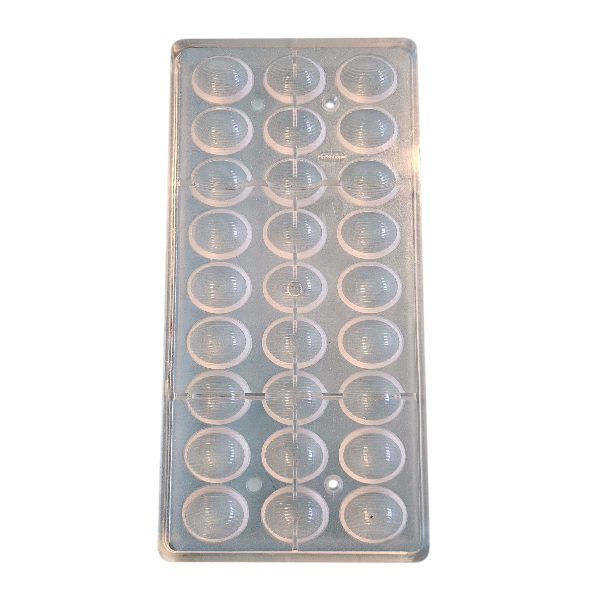 Nous vous proposons à la vente ce très beau moule à chocolat en polycarbonate pour réaliser des demi œufs rayés.